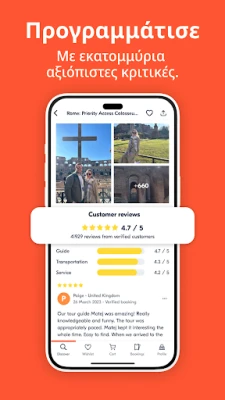 Η εμπιστοσύνη αποτελεί τον ακρογωνιαίο λίθο της GetYourGuide. Για οποιαδήποτε απορία, η 24ωρη εξυπηρέτηση πελατών είναι πάντα διαθέσιμη μέσω email, τηλεφώνου και WhatsApp, προσφέροντας υποστήριξη σε πολλές γλώσσες. Επίσης, με την ευέλικτη πολιτική ακύρωσης, οι περισσότερες κρατήσεις μπορούν να ακυρωθούν δωρεάν έως και 24 ώρες πριν τη δραστηριότητα, προσφέροντάς σας την απαραίτητη ευελιξία για απρόβλεπτες αλλαγές στα σχέδιά σας. Εκατομμύρια εξερευνητές έχουν ήδη εμπιστευτεί την GetYourGuide για να ζήσουν τις αγαπημένες τους εμπειρίες, από μαγευτικές περιηγήσεις σε στούντιο κινηματογραφικών ταινιών μέχρι προσπεράσεις ουρών σε iconic μνημεία. Ετοιμαστείτε για την επόμενη σας περιπέτεια.