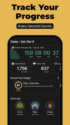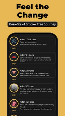Το Stopify προσφέρει μια σειρά από δυναμικά εργαλεία για να υποστηρίξει κάθε βήμα σας. Όταν οι λιγούρες χτυπούν, οι καθοδηγούμενες ασκήσεις αναπνοής, όπως η αναπνοή τύπου "κουτιού" και η τεχνική 4-7-8, λειτουργούν ως άμεση ασπίδα, ηρεμώντας το μυαλό και το σώμα σας. Παρακολουθήστε την εντυπωσιακή σας πρόοδο σε πραγματικό χρόνο, βλέποντας μέρα με τη μέρα να συσσωρεύονται οι άκαπνες ημέρες, τα χρήματα που εξοικονομείτε 💰 και ο πολύτιμος χρόνος που κερδίζετε. Επιπλέον, το ειδικό χρονοδιάγραμμα του Stopify αποκαλύπτει τις απίστευτες αλλαγές στο σώμα σας: από την ομαλοποίηση των καρδιακών παλμών μέσα σε 20 λεπτά, μέχρι τη σημαντική μείωση του κινδύνου για καρκίνο του πνεύμονα και εγκεφαλικό επεισόδιο με την πάροδο του χρόνου.