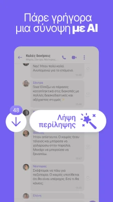 Αναβαθμίστε την επικοινωνία σας με μοναδικές δυνατότητες όπως τα αυτοκαταστρεφόμενα μηνύματα, όπου ορίζετε εσείς τον χρόνο θέασης, προσθέτοντας ένα επιπλέον επίπεδο ιδιωτικότητας στις προσωπικές ή ομαδικές σας συνομιλίες. Εκφραστείτε με απεριόριστη δημιουργικότητα χρησιμοποιώντας τους διασκεδαστικούς Φακούς Rakuten Viber, μία τεράστια συλλογή από αυτοκόλλητα (ακόμη και δικά σας) και GIFs που ζωντανεύουν κάθε συνομιλία. Εξερευνήστε τις Κοινότητες και τα Κανάλια για να συνδεθείτε με ανθρώπους που μοιράζεστε κοινά ενδιαφέροντα, από αθλητικά μέχρι ταξίδια, ή δημιουργήστε τη δική σας για να αλληλεπιδράσετε με ένα απεριόριστο κοινό. Επιπλέον, τα AI chatbots του Rakuten Viber είναι εδώ για να απαντήσουν στις ερωτήσεις σας και να δημιουργήσουν εντυπωσιακές εικόνες, ενώ μπορείτε να οργανώσετε τις σκέψεις σας με σημειώσεις και υπενθυμίσεις, διασφαλίζοντας ότι δεν θα χάσετε ποτέ κάτι σημαντικό. Η Rakuten Viber, μέλος του Rakuten Group, ενός παγκόσμιου ηγέτη στο ηλεκτρονικό εμπόριο και τις χρηματοοικονομικές υπηρεσίες, προσφέρει μια αξιόπιστη και καινοτόμο εμπειρία.