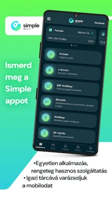 Με την εφαρμογή Simple, οι μετακινήσεις και οι πληρωμές γίνονται απλούστερες από ποτέ. Απολαύστε ανέπαφες πληρωμές στο κατάστημα με κάρτες OTP Visa και Mastercard, καθώς και με την κάρτα Simple, μετατρέποντας το κινητό σας σε ένα σύγχρονο ψηφιακό πορτοφόλι. Η στάθμευση σε όλη τη χώρα γίνεται παιχνίδι, με έξυπνες επιλογές προγραμματισμού, ειδοποιήσεις ζώνης, αποθήκευση πολλαπλών πινακίδων, και ένα widget για άμεση έναρξη. Αποκτήστε ηλεκτρονικές βινιέτες αυτοκινητοδρόμων για την Ουγγαρία με λίγα κλικ, επιλέγοντας από ημερήσιες έως ετήσιες, με δυνατότητα χρονοπρογραμματισμού της ισχύος και υπενθυμίσεις λήξης. Ταξιδέψτε ξέγνοιαστα με την αγορά κινητών εισιτηρίων και πάσο για τα μέσα μαζικής μεταφοράς πανελλαδικά, συμπεριλαμβανομένων των BKK και Volánbusz, αποθηκεύοντας και επιδεικνύοντας τα απευθείας από το κινητό σας.